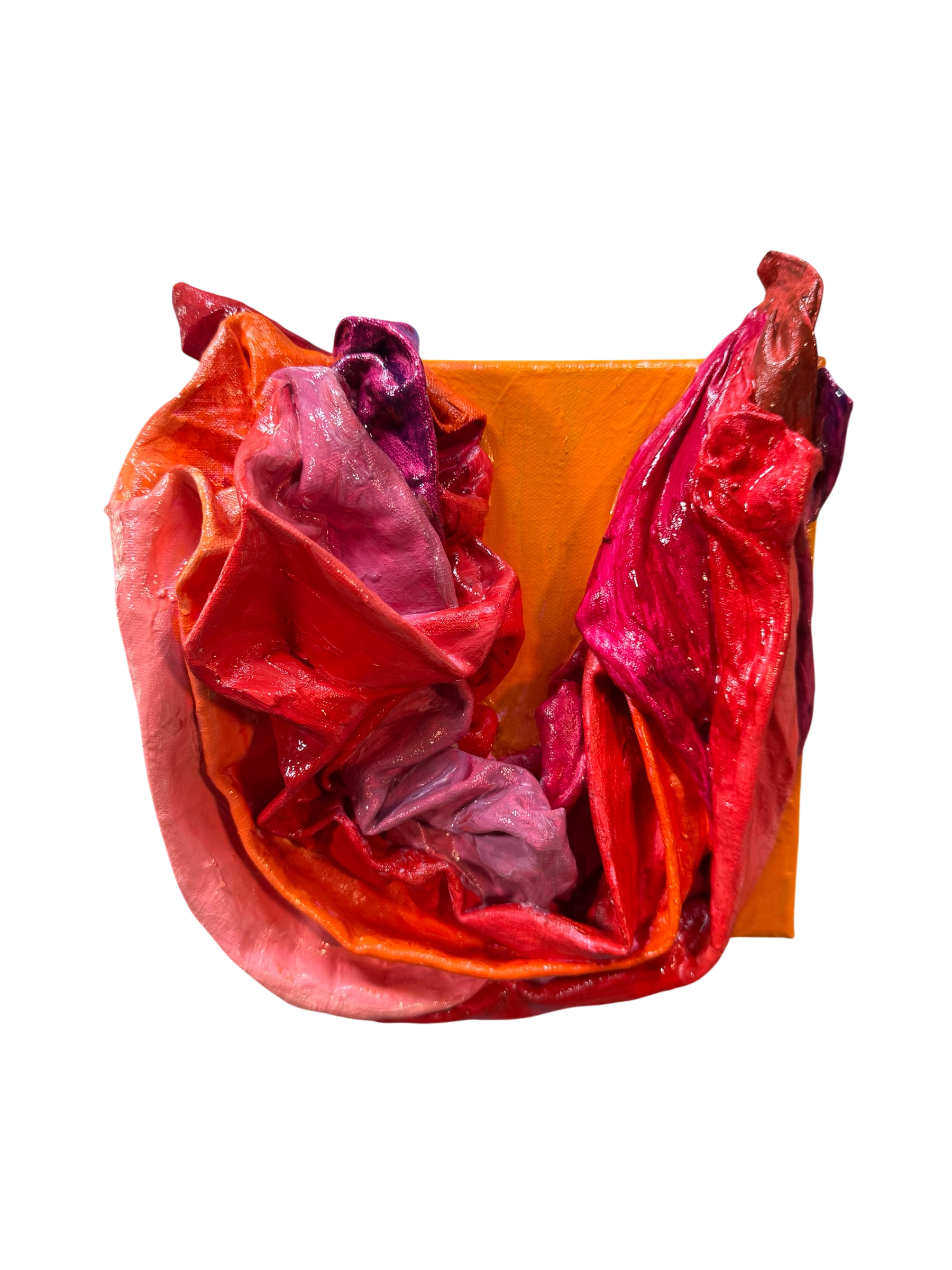 Bustin’ the Tackling est un tableau peint à l’huile sur châssis coton 20×20 cm et tissus. Réalisé en 2025 par l’artiste Crann Piorr’Art.
