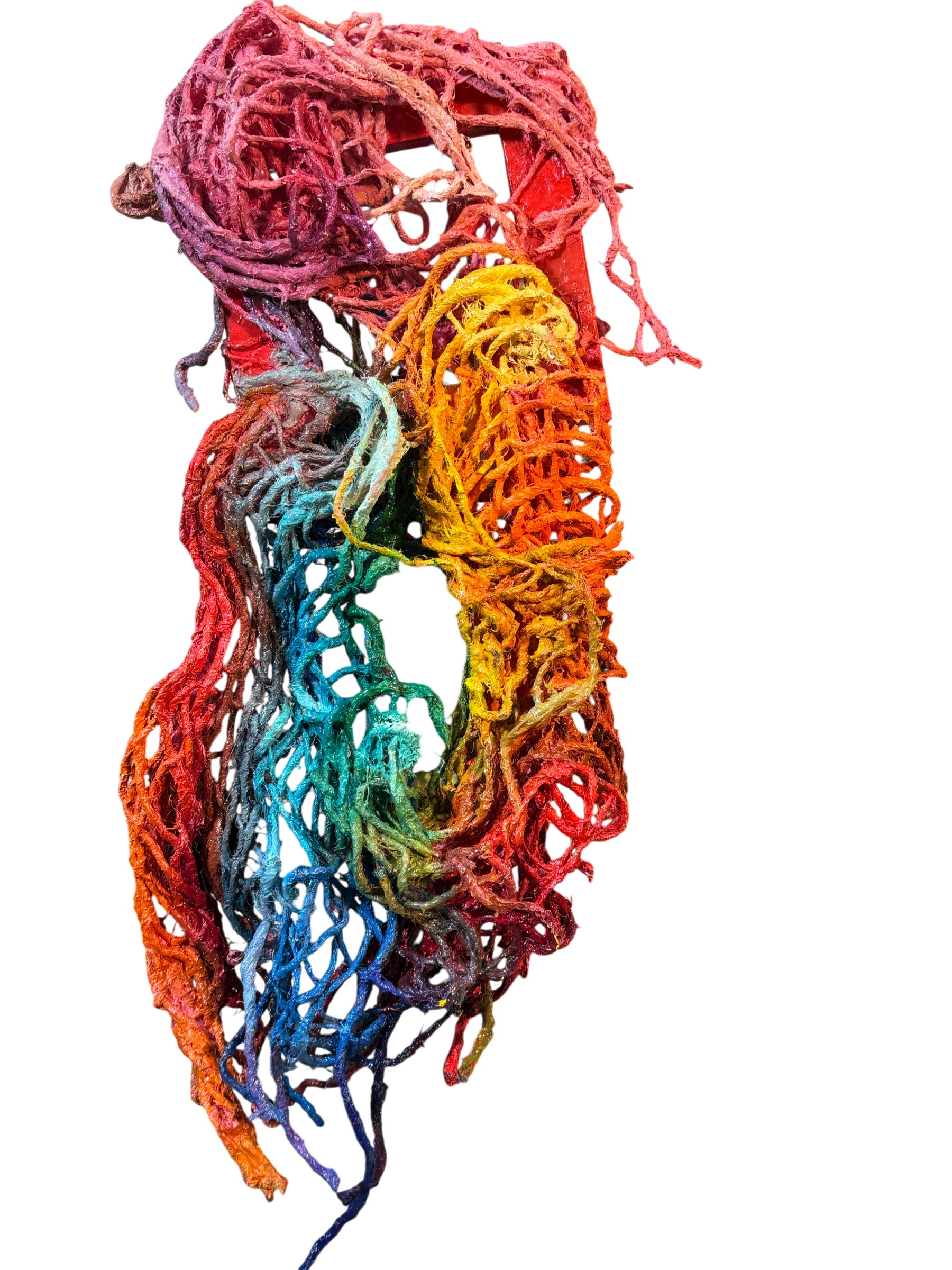 Elephant Woman est une oeuvre peinte à l’huile sur un filet de jute de 68×27 cm monté sur un châssis de 20×20 cm. Réalisé en 2025 par Crann Piorr’Art