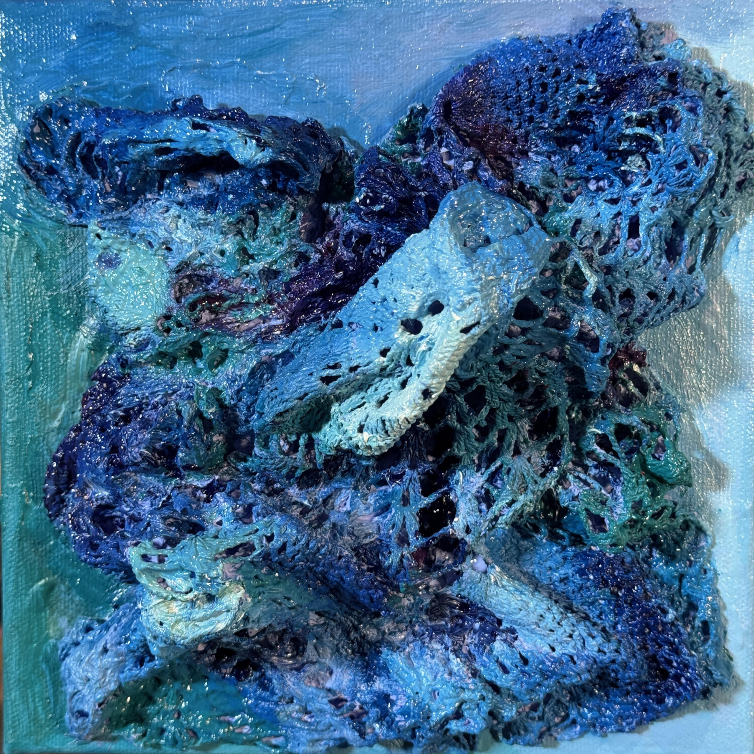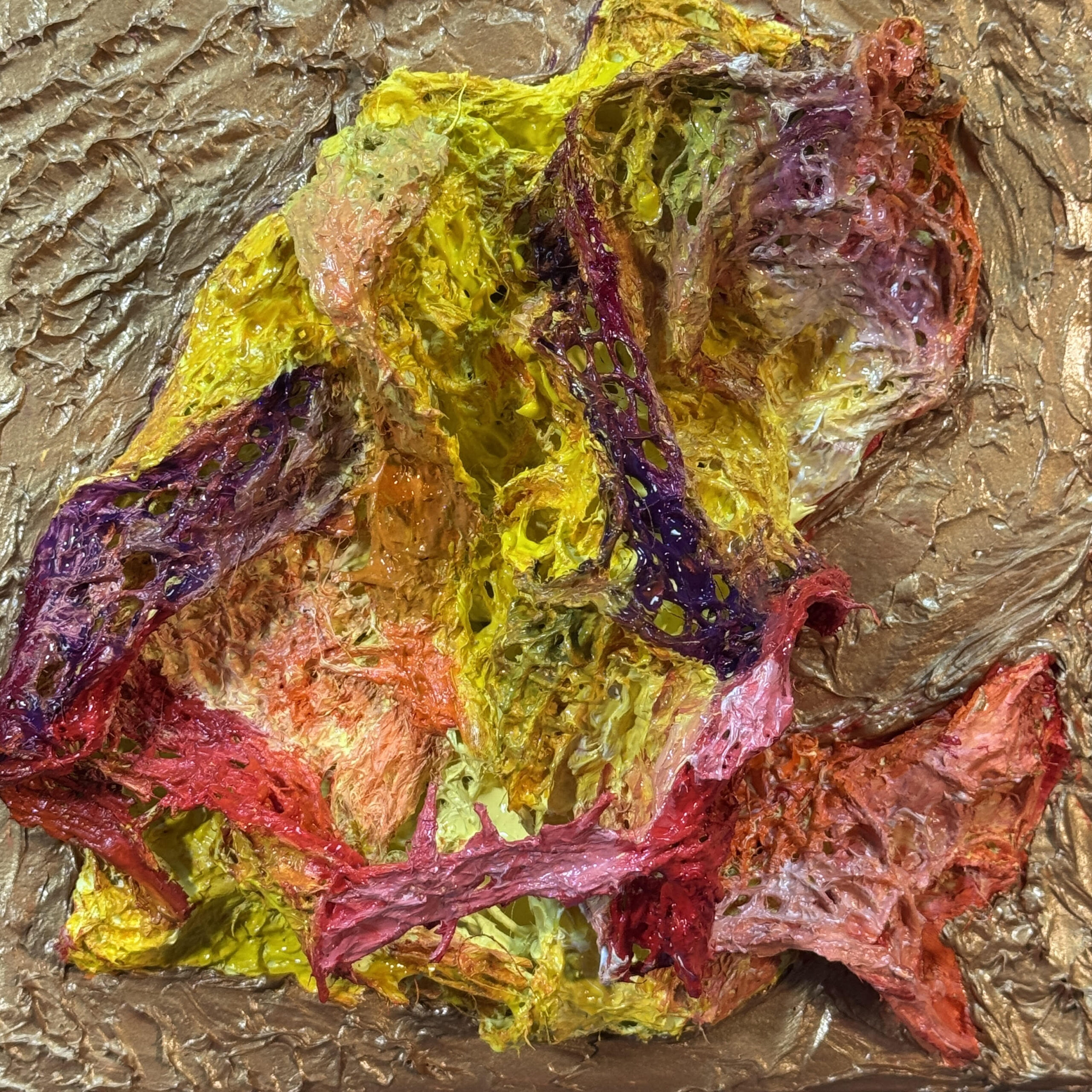 Midas touch. Huile sur toile coton 20x20 cm et filet. @Crann Piorr’Art 2025